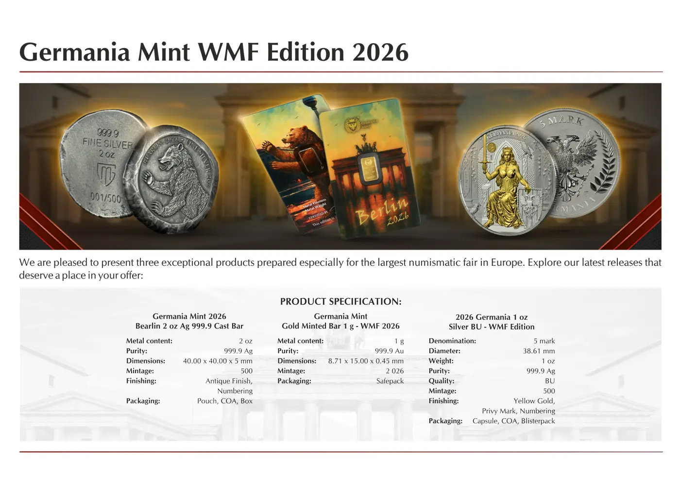 Germania Serie WMF Edition 1 oz Silver 2026 Gilded
