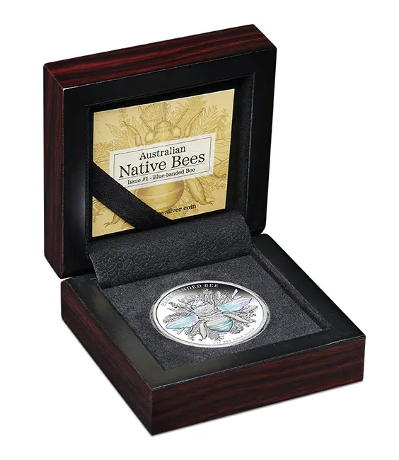 Gefertigt aus 1 Unze 99,9 % reinem Silber in Proof-Qualität. Dank einer innovativen Hologrammtechnik bringt die Münze die leuchtenden Farben der Blaubandbiene (Amegilla cingulata), einer der einzigartigsten und faszinierendsten einheimischen Bienenarten Australiens, wunderschön zur Geltung.